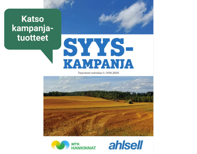 Kampanjatuotteissa laaja valikoima työkaluja ja -tarvikkeita, työvaatteita ja -kenkiä sekä teollisuuden tuotteita. Syyskampanja on voimassa MTK:n jäsenille 31.10.2025 asti verkkokaupassa ja myymälöissä. Katso tuotetärpit alta ja tutustu koko kampanjavalikoimaan esitteestä. Mikäli sinulla jo on asiakastili Ahlsellille, voit hyödyntää kampanjatarjoukset suoraan Ahlsellin kampanjasivulta täältä. Mikäli sinulla ei ole asiakastiliä Ahlsellilla, voit avata tilin täältä